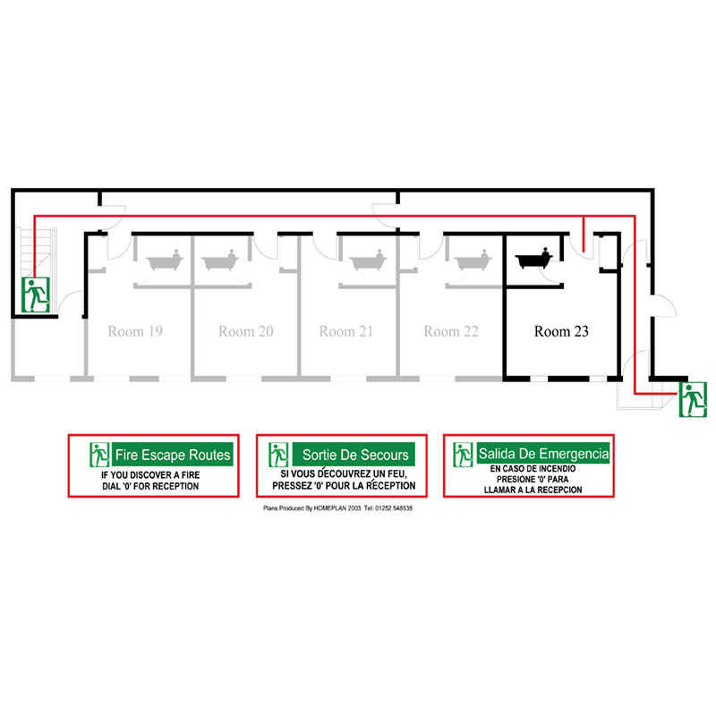 Originally developed for the hotel industry these plans can be used in any business premises where evacuation routes need to be clearly marked.